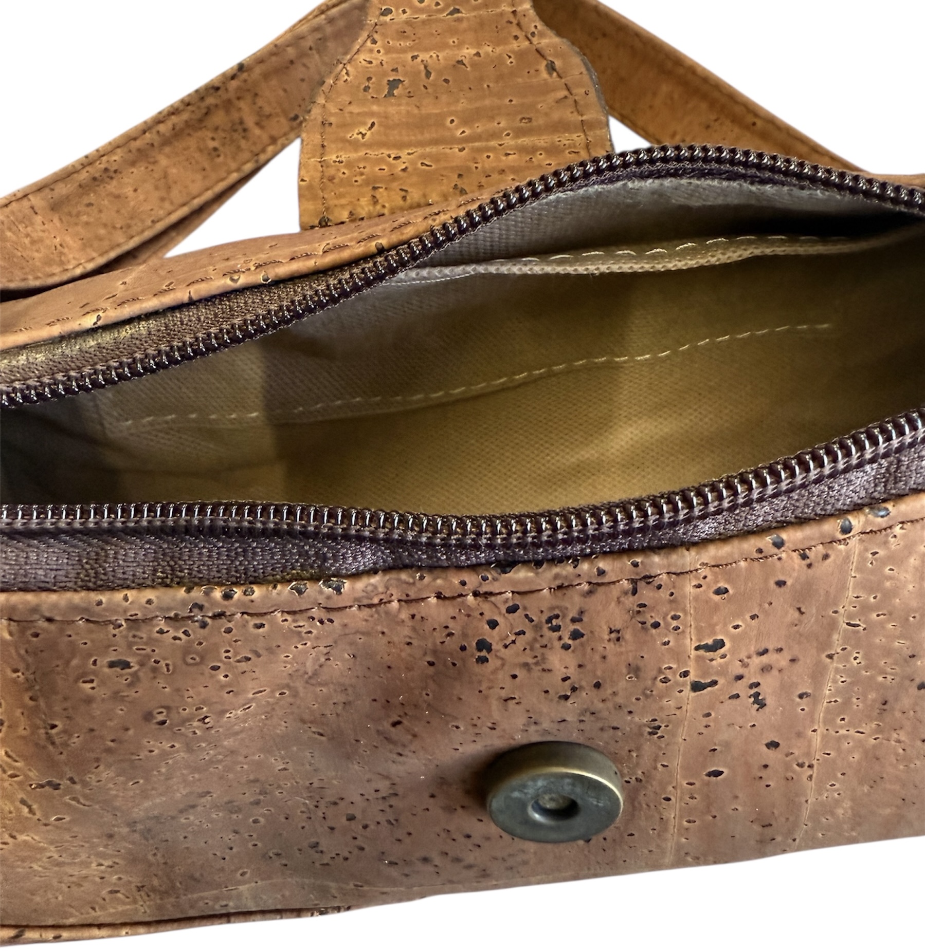 Schouder tas van kurk met 2 kleuren, naturel kurk, donker bruin
